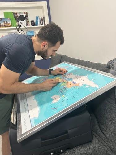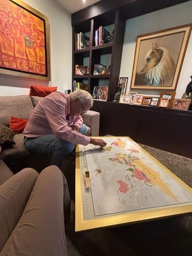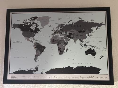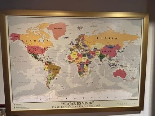Es súper bonito el mapa lo único que yo agregaría más pines y el envío tardo más de lo esperado , fuera de eso es un mapa de buena calidad