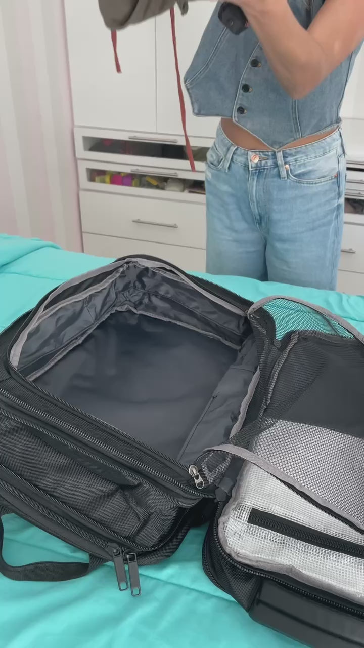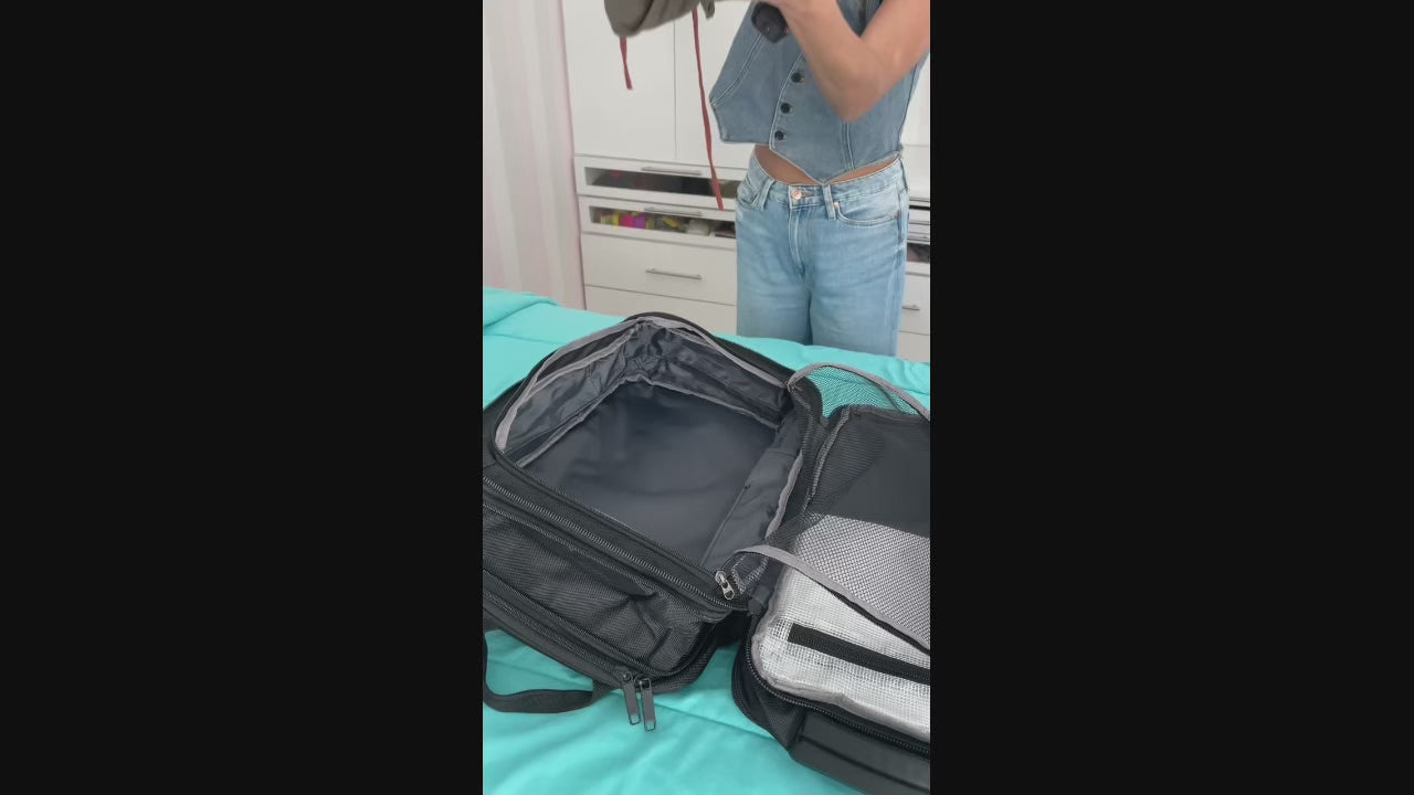 Su diseño espacioso y organizado permite empacar ropa para hasta 2 semanas, convirtiéndola en el compañero perfecto como equipaje de mano en aviones. Viaja con todo lo que necesitas, sin complicaciones y con la seguridad de un diseño que se adapta a tu ritmo.
